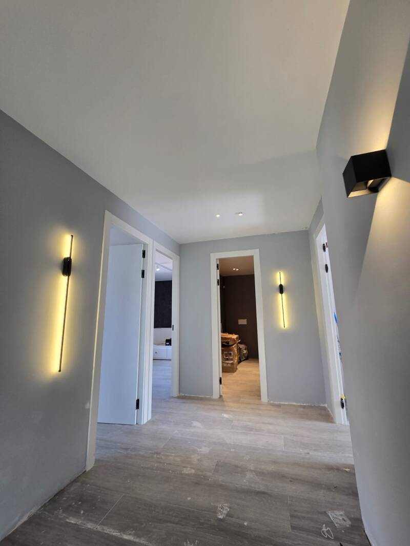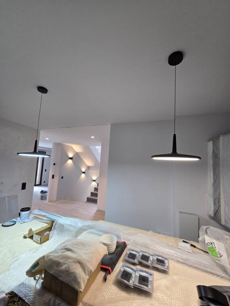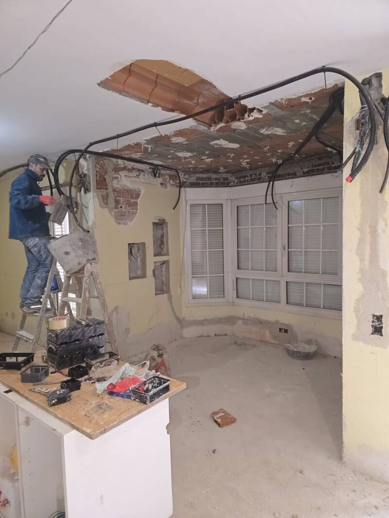 En esta penultima etapa de la reforma de chalet instalamos la iluminacion en el sistema de iluminacion de toda la vivienda, colocando lamparas de techo y paredes como tambien luces led en todos los sitios seleccionados por los clientes.
