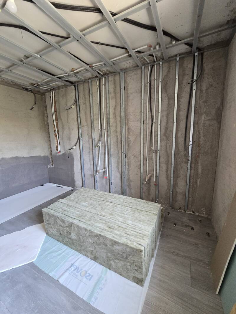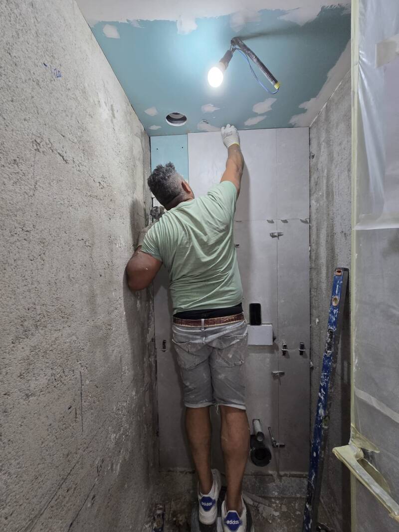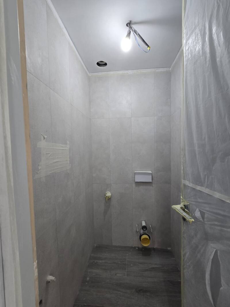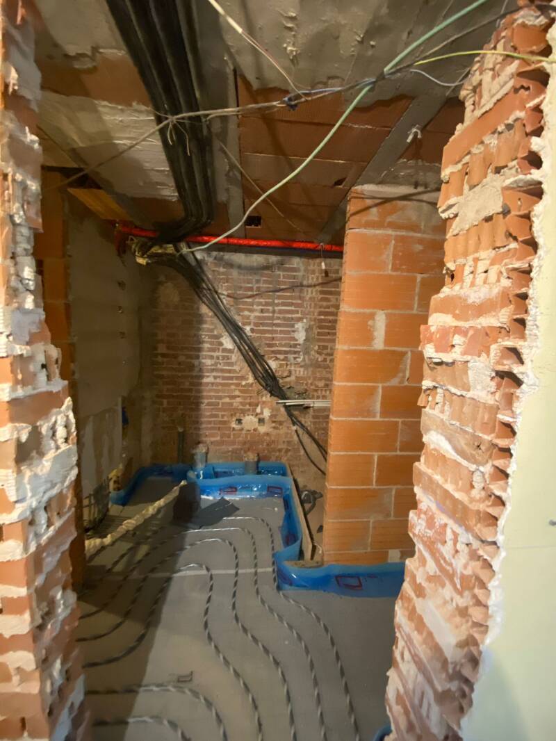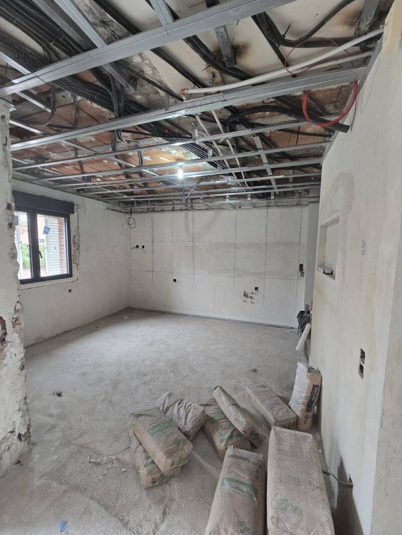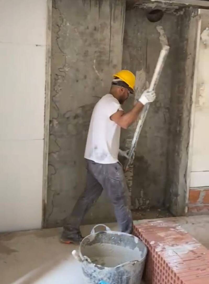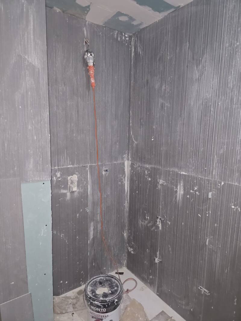 En esta décima etapa de la reforma avanzamos con el alicatado de las paredes de 6 baños y 3 cocinas, colocandose un revestimiento completo en todas las areas de las paredes como tambien el revestimiento de la zona de garage.