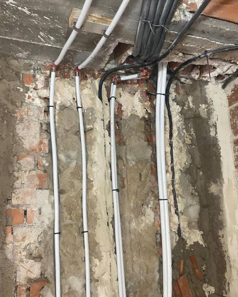 Para la nueva fontaneria de esta vivienda utilizamos tuberias multicapa y de pvc para instalar los nuevos sistemas de distribucion para agua fria y caliente de los baños y cocinas, crearemos las nuevas redes de distribucion de saneamientos y por ultimo la nueva red de drenajes de la zona de garage.