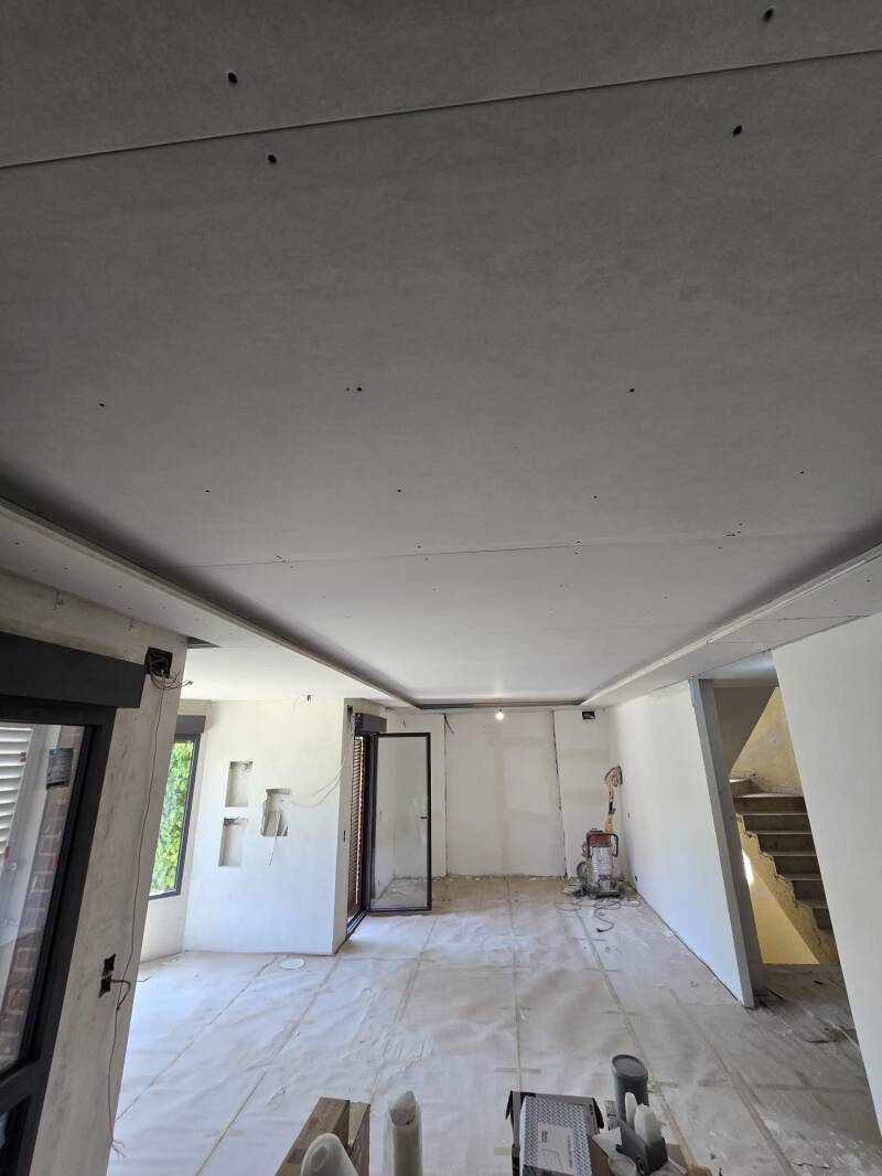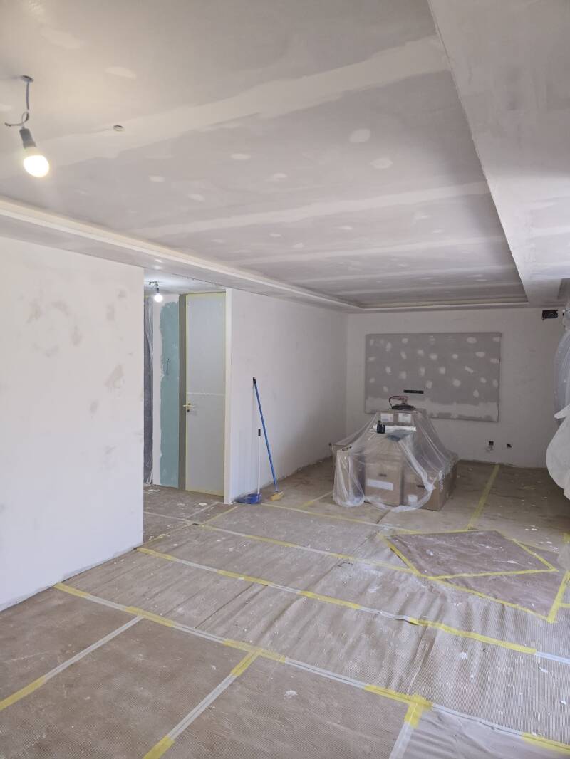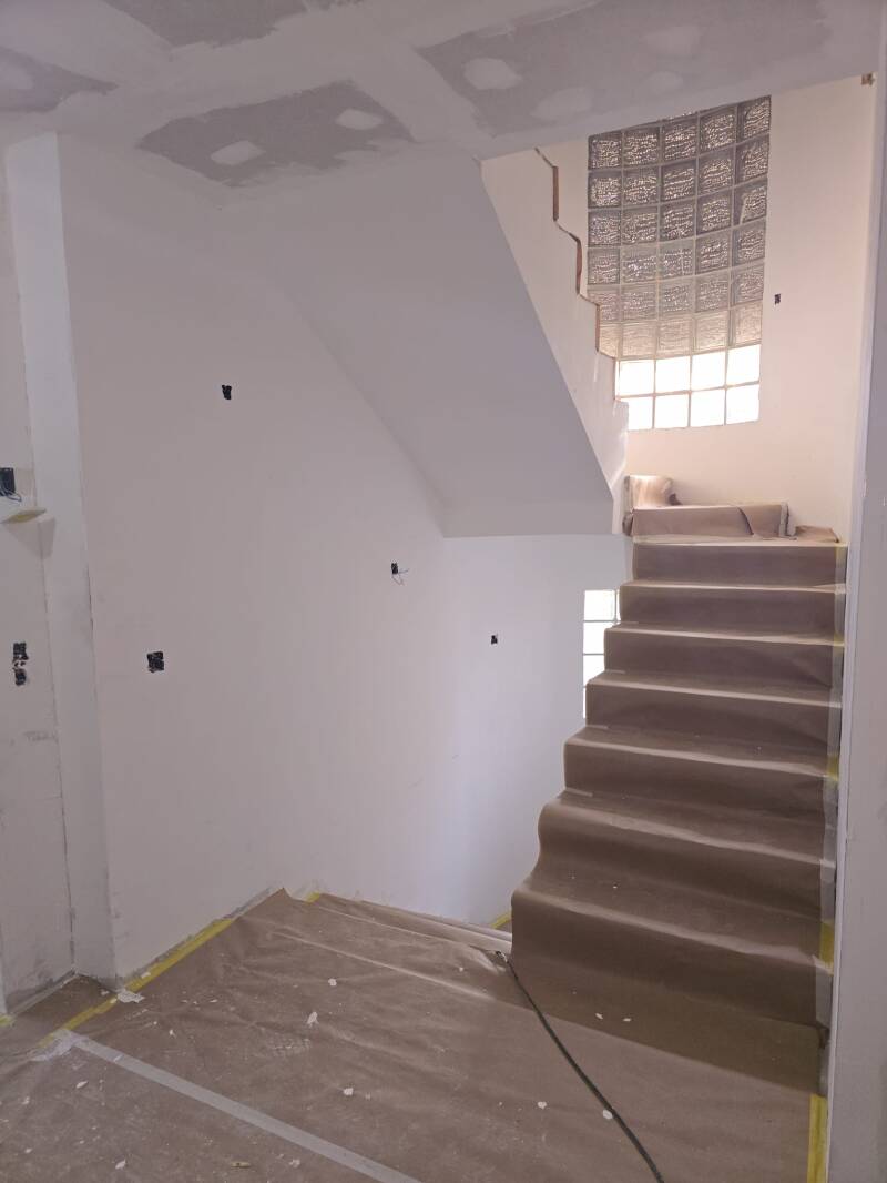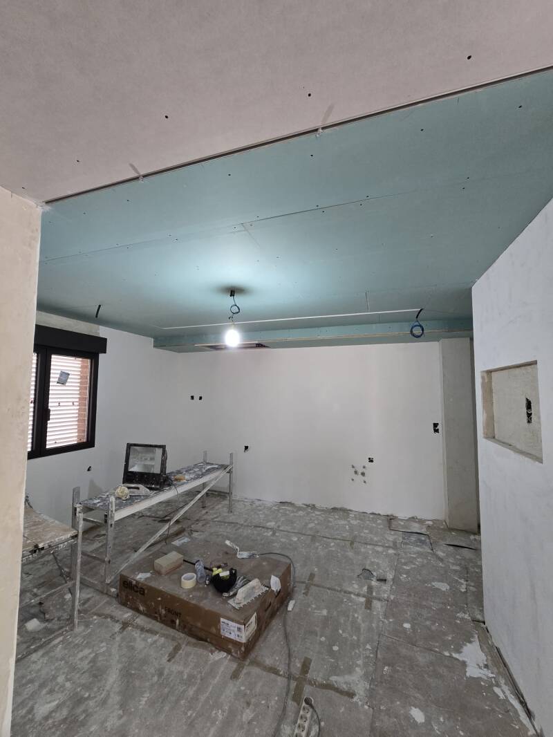 En esta etapa realizamos en enlucido de las paredes y techos con el masillado y lijado de todas las superficies de de la vivienda, logrando un aspecto liso en todas las superficies para seguidamente pintar de los colores seleccionados por los clientes.