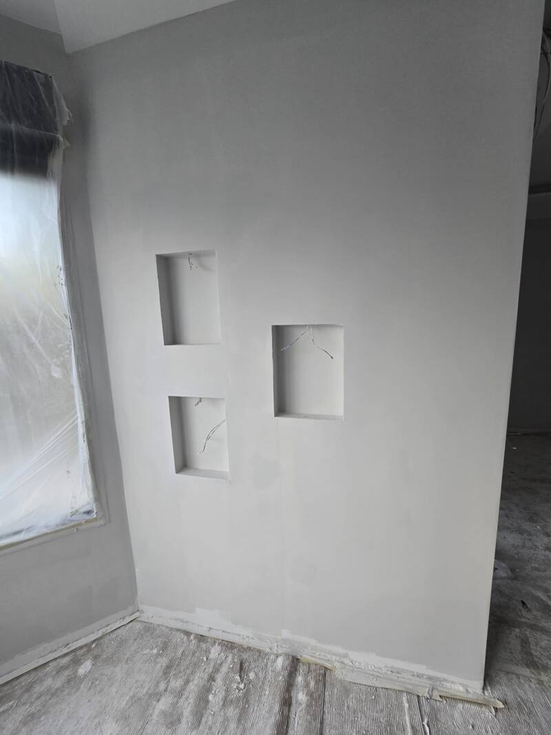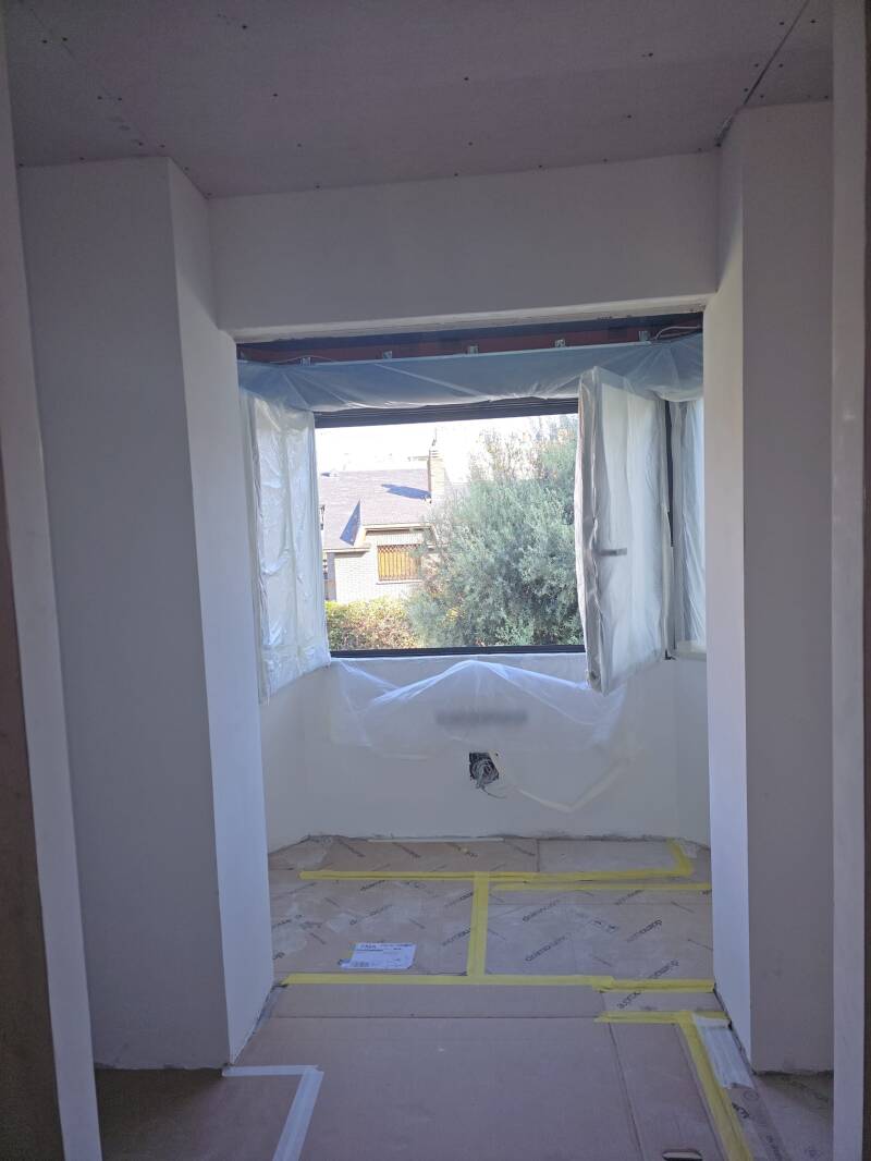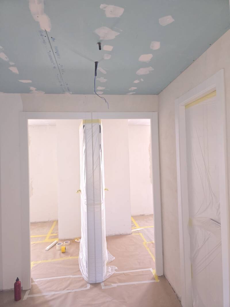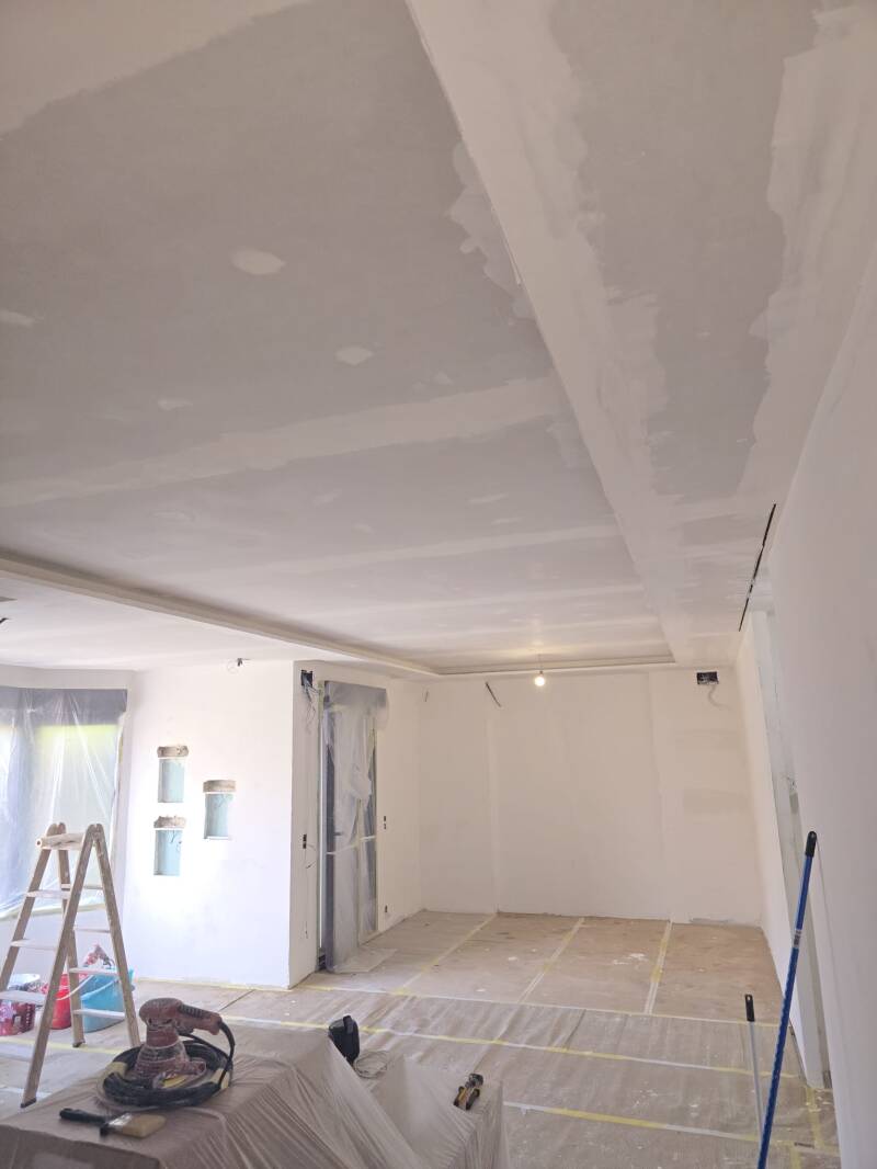 En esta etapa realizamos en enlucido de las paredes y techos con el masillado y lijado de todas las superficies de de la vivienda, logrando un aspecto liso en todas las superficies para seguidamente pintar de los colores seleccionados por los clientes.