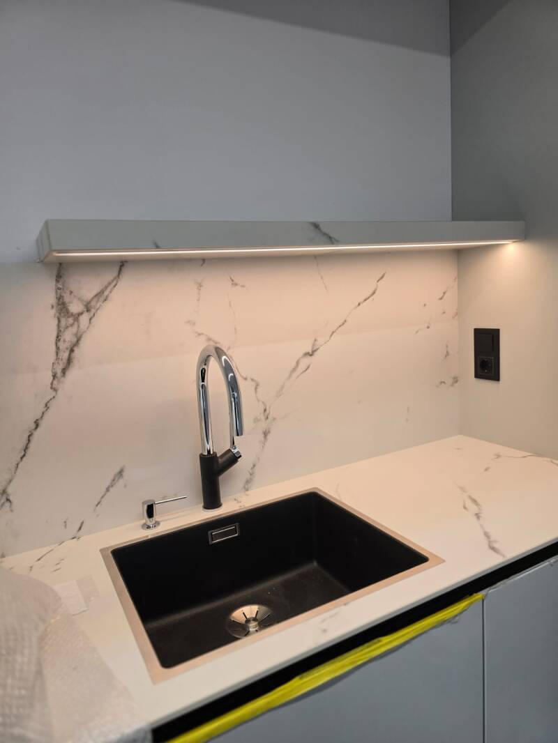 En esta etapa avanzaremos con el armado e instalacion de los muebles altos y bajos de las cocinas, instalacion de griferias para pileta, cortado de encimeras, instalacion de electrodomesticos e instalacion de la isla de cocina.