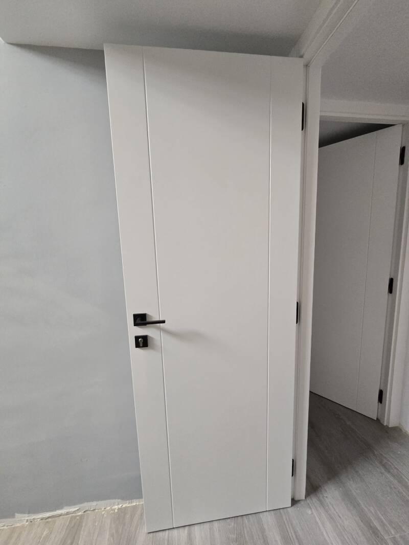En esta etapa avanzamos con todas las instalaciones de las puertas interiores abatibles y correderas en las zonas de 6 baños, 2 pasillos y 5 habitaciones de la vivienda.