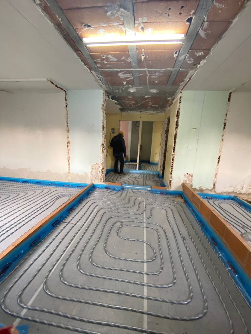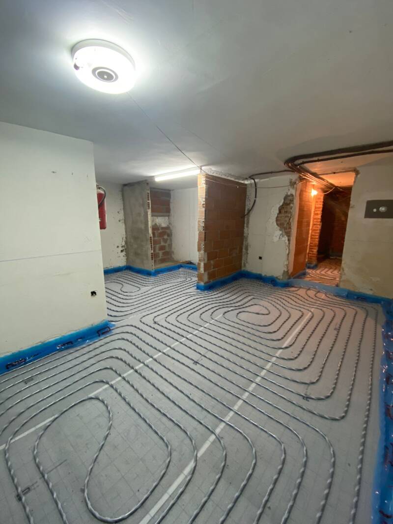 En esta quinta etapa realizaremos la instalacion del sistema de aerotermia con suelo radiante para una mejor eficiencia energetica autosostenible, a traves de las redes de tuberias colocadas en todo el solado de la vivienda la temperaturasera transmitida a traves de estos ductos y podra ser controlada por el cliente con mayor comodidad.