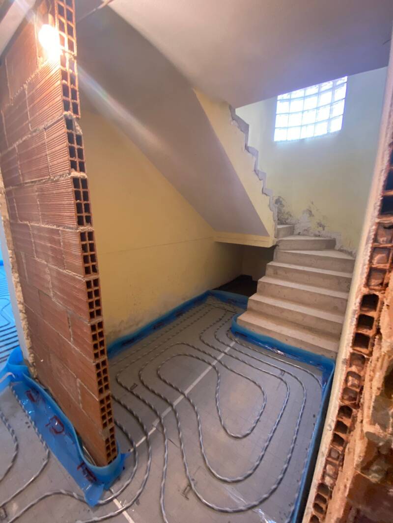 En esta sexta etapa posicionaremos y fijaremos todos los ductos del sistema de calefaccion con aerotermia, realizaremos la nivelacion de todos los solados y escaleras con la pavimentacion de hormigon para su posterior revestimiento.