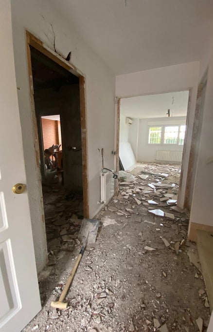 Luego de haber planificado y replanteado todas las areas de la vivienda seguimos con la segunda etapa para hacer las nuevas instalaciones de: nuevas redes de sistema de agua fria y caliente de baños y cocina, nueva red de saneamientos, sistema de calefaccion para radiadores y aires acondicionados, distribucion completa para nuevos enchufes e interruptores, nueva red de iluminacion, nueva pavimentacion, colocacion de solados y rodapies, levantamiento de tabiques de pladur para nueva habitacion y baño, colocacion de falso techo de pladur, armado e instalacion de puertas y ventanas, aislamiento termico y acustico de paredes, instalacion de tarima flotante y rodapies, alicatado de las paredes de baños y cocina, armado e instalacion de muebles de baño: lavabo, water, griferias, espejo, radiador, mampara y plato de ducha, como tambien el armado e instalacion de los muebles de cocina y por ultimo el enlucido de las paredes y techos con masillado, lijado y pintado de toda la vivienda.